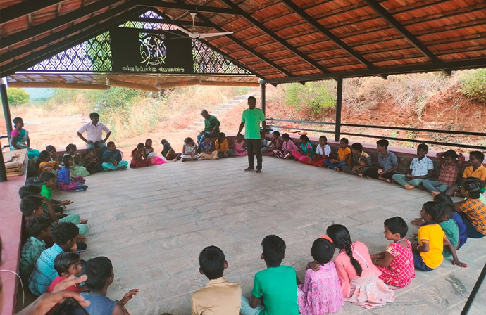A 2-Day Workshop for Children aged 6-12 years was organised by Inbavanam Resource Centre on 15th and 16th May 2024. The workshop provided children with a unique blend of cultural enrichment, environmental education, and fun-filled activities. Through the guidance of skilled facilitators, the children not only learned traditional arts and games but also developed a deeper understanding of nature and teamwork.